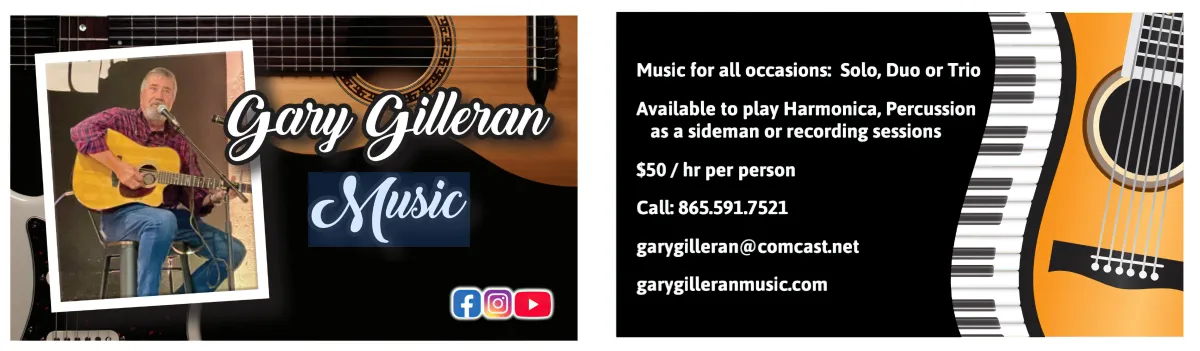 Gary was born and raised in Chicago. He started playing drums at 13 and started playing guitar and writing songs at 18. He was influenced early on by Cat Stevens, John Prine, Bob Dylan and other popular folk/rock artists from the late '60's and early '70's. He moved to Nashville in 1973 to pursue a music career where he met his wife of now over 50 years. They have raised 5 children and are blessed with 12 grandchildren....so far! Gary performs mostly in songwriter rounds and open mics in his spare time. He also serves other musicians and bands as a sideman playing congas and harmonica. He is an active member of the Knoxville Songwriters Association and Red House Round songwriter's cooperative.